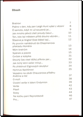 Svazek obsahuje výbor z veršů klasika anglické i světové poezie.Keats ve svých verších zaznamenává již uměleckou krizi romantismu: tvoří ji na jedné straně vztah snu a skutečnosti, na druhé jakýsi estetický paradox, který odhaluje rozpory v dosud pevné hodnotové struktuře.