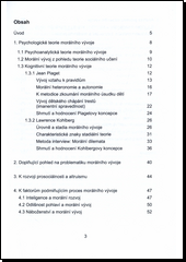 V textu monografie jsou prezentovány základy psychologie morálky se zaměřením na podrobnější seznámení s koncepcemi morálního vývoje J. Piageta a L. Kohlberga. Autor dále věnuje pozornost faktorům, které morální vývoj podmiňují (inteligence, odlišnost pohlaví, vliv náboženství, vztah emocionální a kognitivní stránky v morálním vývoji a vztah morálního usuzování a jednání). Morální vývoj je dále analyzován s ohledem na věk vychovávaných a závěrečná kapitola se zabývá problematikou mravní výchovy s vyústěním do metodické oblasti.
