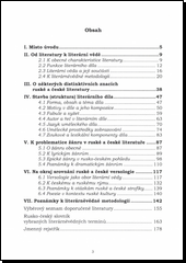 Publikace je určena studentům filologických oborů pedagogických a filozofických fakult zabývajícím se studiem ruské literatury. Přináší – v komparativním česko-ruském pohledu – základní charakteristiku ruské teorie literatury, distinktivní znaky jejích literárních žánrů, uměleckého zobrazování, svébytnosti ruské poezie, včetně charakteristiky ruské versologie a rovněž elementární poznatky o metodologii literárněvědné práce. Z propedeutických důvodů je práce napsána česky, přičemž základní literárněvědné termíny jsou jednak uváděny v závorce přímo v textu, jednak jsou zařazeny v příloze ve formě rusko-českého slovníku. Teoretický výklad je doplněn řadou konkrétních ilustrativních příkladů z ruské literatury 19. a 20. století.