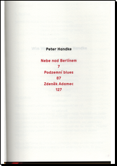 HANDKE, Peter. Nebe nad Berlínem: Podzemní blues ; Zdeněk Adamec. Překlad Petr ŠTĚDROŇ. Brno: Větrné mlýny, 2020. 167 stran.