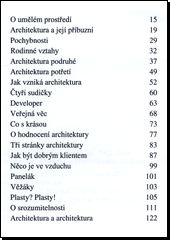 Kniha vznikla z poznámek, které si její autor, povoláním architekt, psal původně jenom sám pro sebe. Druhé, upravené vydání vychází se zkráceným názvem a rozšířeným obsahem, nově rozčleněným do tří částí:- ARCHITEKTURA- ARCHITEKTI- MĚSTOTématy a formou se kniha snaží oslovit ty, kteří se až dosud s architekturou míjeli, ale i ty, kdo se s ní už setkali, nebo jsou v ní dokonce sami aktivní.
