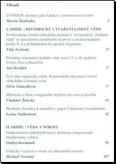 Kolektivní monografie Limity vědeckého poznání je hlavním výstupem ze stejnojmenného grantu (SGS/FF/2013), řešeného v roce 2013 na katedře filozofie FF OU v návaznosti na projekt Situovaná věda, řešený na tomtéž pracovišti předchozího roku. Na knize spolupracovalo pět vyučujících katedry filozofie a většina jejích doktorandů. Autoři z různých stran uchopují limitovanost vědeckého poznání. V první, historické části se zkoumá proces stanovování hranic mezi vědou v moderním slova smyslu a jinými, tradičnějšími formami poznání. Pozornost je věnována magii či J. A. Komenskému a jeho polemice s Descartesem. Tématem druhé části jsou normy a jejich vliv na vědecké zkoumání, ale také, v opačném gardu, vliv vědeckých poznatků na společenské normy. V třetí části se pak rozvíjí téma Baconových idolů, překážek pravdivému poznání, ať už jsou tyto původu přirozeného nebo kulturního. Ve svém úhrnu kniha přezkoumává, čím je samotná věda a jak na vědecké poznání reaguje společnost, ať už jde o stanovování limitů, jež věda nemůže překročit, nebo naopak o posouvání limitů našeho dosavadního obrazu světa.