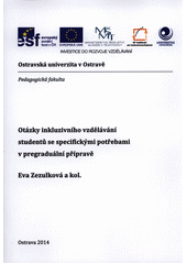 ZEZULKOVÁ, Eva. Otázky inkluzivního vzdělávání studentů se specifickými potřebami v pregraduální přípravě. Ostrava: Ostravská univerzita v Ostravě, Pedagogická fakulta, 2014, 200 s. ISBN 978-80-7464-663-8.