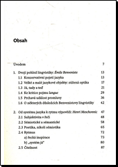 V pozdních textech Émila Benvenista (1902-1976) je patrná snaha najít alternativu k strukturální lingvistice, která svým předmětem činí neosobní jazykový systém. Benveniste klade důraz na samu událost výpovědi, nesoucí jedinečný význam, a na subjektivitu mluvčího, která se ve výpovědi ohlašuje. Tyto snahy v oblasti lingvistiky neunikly pozornosti literárních vědců. Někteří z nich (H. Meschonnic, G. Dessons, S. Martin, Ch. Laplantinová) na základě Benvenistovy jazykovědy rozpracovali a dále rozpracovávají "novou poetiku", nesouměřitelnou jak s premisami literárněvědného strukturalismu, tak s hlavními předpoklady některých post-strukturalistů. Z hlediska "nové poetiky" poezie nenarušuje ani nerealizuje systém básnických norem. Charakteristická je pro ni specifičnost výpovědi a subjektivní hledisko autora, který se v neopakovatelném okamžiku chápe slova. Předkládanou monografii lze číst jako úvod do hlavních témat Benvenistovy lingvistiky a do poetiky Henriho Meschonnika (1932-2009) a Gérarda Dessonse (* 1949), dvou nejvýznamnějších Benvenistových interpretů na poli literární teorie.