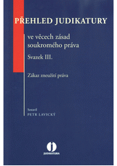 Třetí svazek přehledu judikatury ve věcech zásad soukromého práva shrnuje judikáty týkající zásady zákazu zneužití práva. Kniha obsahuje pečlivý výběr jak současné, tak stále použitelné starší judikatury. Každé rozhodnutí je upraveno do podoby standardního judikátu. Vyhledávání v knize usnadní věcný rejstřík a rejstřík právních předpisů. Vzhledem k povaze zásad soukromého práva lze předpokládat, že judikatura zařazená do tohoto přehledu bude použitelná i po rekodifikaci soukromého práva.