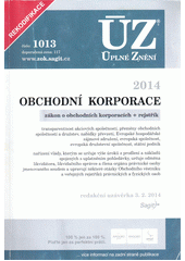 Nový zákon o obchodních korporacích účinný od 1.1.2014 s podrobným rejstříkem. Publikace dále obsahuje zákon o přeměnách obchodních společností, zákon o nabídkách převzetí, zákon o evropské společnosti, o evropské družstevní společnosti a o EHZS včetně příslušných vyhlášek, o transparentnosti akciových společností. Celkem 14 právních předpisů v aktuálním znění s vyznačením novelizovaných pasáží.