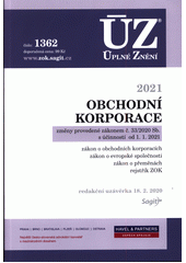Od ledna 2021 nabude účinnost rozsáhlá novela zákona o obchodních korporacích, která mění všechny části zákona, od jeho obecných ustanovení, přes právní úpravu všech druhů obchodních společností až po družstva. Více než 600 změn mění řadu dosavadních pravidel, z nichž některá se pouze zpřesňují, ale některá dostávají zcela nový obsah (rozdělení zisku, výplata záloh, postavení společníků, statutární orgány, posílení transparentnosti). Účinnost změn nastává lednem 2021 s tím, že do půl roku pak musí obchodní korporace uvést svá zakladatelská právní jednání do souladu s novou úpravou. Vedle zákona o obchodních korporacích se mění také zákon o evropské společnosti a zákon o přeměnách obchodních společností a družstev. Všechny tyto zákony ve znění od roku 2021 jsou obsaženy v nové publikaci; změny jsou zvýrazněny tučně. Aktualizován je také rejstřík zákona o ZOK.