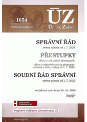 Všechny zákony obsažené v publikaci prošly menšímu změnami, a to k 1. 7. 2025 anebo k 1. 1. 2026. První kapitola obsahuje aktuální znění správního řádu, dále soudní řád správní a vyhlášku o rozsahu hotových výdajů a ušlém výdělku. Ve druhé kapitole najdete aktuální text zákona o některých přestupcích, zákona o odpovědnosti za přestupky, a dále text vyhlášky upravující zkoušky úředních osob. Poslední změny předpisů jsou v textu zvýrazněny tučně, odkazy na související předpisy jsou plně citovány.