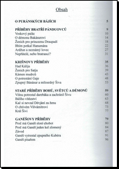 Mýty převyprávěné podle hindských verzí. Určeno především mládeži.Staroindické báje, správněji puránské báje (purán = starý), vznikaly už od začátku našeho letopočtu a tradovaly se po celé věky jen ústně. Jejich příběhy se odehrávají ve třech světech, ve které Indové skálopevně věřili: ve světě bohů, lidí a démonů. V puránách se scházejí postavy z různých eposů, ba z různých období vývoje mytologie. Bohové nejsou vždy dokonalí, ani démoni nejsou zcela zlí. Bohové se někdy uchylují ke lsti, i démoni mohou někoho milovat, někoho vroucně uctívat. Lidská fantazie zde nezná mezí. Purány jí přímo hýří a prolíná se v nich svět lidí se světem zvířat. Všechno živé má svůj význam a se zvířetem se rozmlouvá jako s rovnocenným partnerem.