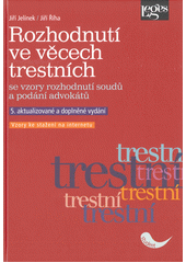 JELÍNEK, Jiří. Rozhodnutí ve věcech trestních: se vzory rozhodnutí soudů a podání advokátů. 5. aktualizované a doplněné vydání. Praha: Leges, 2023. 624 stran. Student.