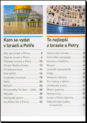 Průvodce přestavuje Izrael a Petru (Jeruzalém a okolí, Tel Aviv a Jaffa, Galilea a sever země, Mrtvé moře a Negev). Dozvíte se, kam se vydat, které památky a místa navštívit. Nechybí turistické tipy a informace.