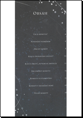 Průvodce po fascinujícím světě tajemných vesmírných jevů zvaných komety. Společně se vydáme na cestu časem i vesmírem a prozkoumáme, jak komety vznikají, proč se některé z nich objevují pravidelně a co mají společného s padajícími hvězdami. Náš atlas začíná rokem 1471 a končí ve 21. století. Kniha vznikla ve spolupráci s Národním astrofyzikálním ústavem – observatoří Capodimonte v Neapoli. Přidej se k nám a objevuj vesmírné tajemství komet! Na co myslíš, když pozoruješ hvězdnou oblohu? Dokážeš rozeznat kometu? Komety jako tajemné „vlasatice“ odpradávna křižují vesmír a podněcují lidskou zvědavost i fantazii. Vydej se s námi na cestu vesmírem i časem za velkými kometami, které pravidelně ozařují oblohu a uchvacují jak vědce, tak umělce. Jak komety vznikají, proč se některé vracejí a jiné ne? Co mají společného s padajícími hvězdami? Lze je slyšet? A které jsou ty nejslavnější? Náš atlas začíná rokem 1471 a končí ve 21. století. Nemůže v něm pochopitelně chybět Halleyova kometa, zaznamenaná v Číně už roku 240 př. n. l.