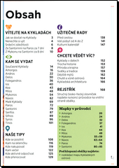 Objevte kouzlo Kykladských ostrovů, kde se snoubí nesmírná krása s bohatou historií do jedinečného turistického ráje. Náš průvodce vám představí toto fascinující souostroví roztroušené v azurových vodách Egejského moře. Od zlatých pláží Santorini až po malebné vesnice na Milosu, Kykladské ostrovy nabízejí nespočet důvodů, proč je zařadit na vrchol vašeho cestovního seznamu. Prozkoumejte pláže s křišťálově čistou vodou a zajímavě tvarovanými útesy, lemované barevnými domečky přiléhajícími k útesům zvanými sirmata, a projděte se fascinujícími bílými vesnicemi ozdobenými modrými kopulemi kostelů a kaplí. Mykonos, často označovaný jako „řecká Ibiza“, slibuje nezapomenutelnou zábavu zejména pro mladé, zatímco ostrovy jako Amorgos nebo Serifos poskytují pokojné a autentické zážitky těm, kteří vyhledávají odpočinek od běžného života. Autoři pro vás vybrali to nejlákavější, atraktivní místa jsou hodnocena hvězdičkami a jsou vyznačena na mapkách oblastí i na podrobné mapě. Průvodce vám nabízí přehled hlavních kykladských zajímavostí, několik výletů do okolí a praktické rady na cesty. Inspirovat se můžete také tipem na výlety po ostrovech. Nechybí doporučení z oblasti ubytování a představení vyhlášené řecké kuchyně. Kniha obsahuje i malý slovníček, který pomůže s objednáním jídla v restauraci. Pokud se chcete vyznat v řeckých nápisech nebo být připraveni na nouzové situace, přibalte si do kufru naši řeckou konverzaci. Průvodce popisuje tyto ostrovy a oblasti: Současné Kyklady Amorgos Andros Delos Folegandros Ios Kea Milos Mykonos Naxos Malé Kyklady Paros Santorini Serifos Sifnos Syros Tinos S orientací vám pomohou plánky, doporučená místa jsou označena na mapkách barevnými terčíky s číslem. Červeně uvedené souřadnice (např. C2) odkazují na podrobnou rozkládací mapu (vloženou vzadu v průvodci).