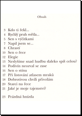Soubor textů českého žurnalisty a nakladatele obsahuje čtrnáct elegicky laděných básní a jednu prózu, která rovněž vyniká posmutnělým a zádumčivým charakterem.