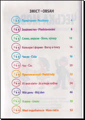 Kniha obsahuje 22 základních konverzačních témat. S pomocí ilustrací se snadno naučíte užitečná česká a ukrajinská slovíčka a fráze. Nahrávky ke stažení na webových stránkách nakladatelství.