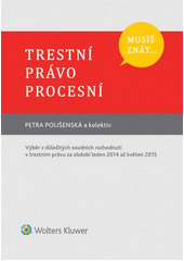 POLIŠENSKÁ, Petra. Trestní právo procesní: výběr z důležitých soudních rozhodnutí v trestním právu za období leden 2014 až květen 2015. Vydání první. Praha: Wolters Kluwer, 2016, 154 s. Musíš znát.... ISBN 978-80-7552-053-1.