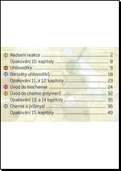 Pracovní sešit představuje ucelený soubor různých typů kreativních cvičení (křížovky, zaškrtávání, spojování aj.) zaměřených na porozumění zákonitostem chemie. V úlohách jsou originálně propojené pojmy a termíny se zábavnými prvky. Pozitivem pracovního sešitu je spojitost cvičení s reálným životem, což výrazně podporuje zájem žáků o probírané učivo a zároveň představuje zdroj nejsnadněji zapamatovatelných vědomostí.V souladu s RVP ZV. Pracovní sešit má přehledné a poutavé grafické zpracování. Moderní a plnobarevný design, který podporuje motivaci a kreativitu žáků. Souhrnná opakování na konci každého tematického celku. Cvičení zpracovaná formou motivující žáky k jejich vyřešení. Přílohou sešitu je tabulka shrnutí názvosloví organické chemie. V sešitu jsou uvedeny náměty na chemické pokusy (Nakladatelská anotace)