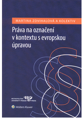 ZDVIHALOVÁ, Martina. Práva na označení v kontextu s evropskou úpravou. Vydání první. Praha: Wolters Kluwer :, Metropolitan University Prague Press, 2018. xxvii, 259 stran.