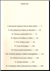 Další pokračování ze série historických detektivek z Čech počátku 14. století s mladým šlechticem v roli pátrače. Tentokrát se v ohrožení života ocitá Eliška Přemyslovna. Šlechtic Adam ze Zbraslavi je po krátkém pobytu v klášteře opět povolán ke královskému dvoru. O pomoc ho tentokrát požádala jeho chráněnka Alžběta, která se strachuje o život své tety Elišky Přemyslovny. Dvě dvorní dámy za podivných okolností zemřely - a zdá se, že nešlo jen o zločiny z vášně. V královské rodině se totiž rozhořel boj o korunu. Podaří se Adamovi ze Zbraslavi rozplést politické pozadí zločinů a dopadnout pachatele dřív, než sáhne smrt i po samotné Přemyslovně?