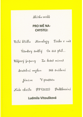 VITOUŠKOVÁ, Ludmila. Pro mě nachystej: sbírka veršů. Vydání první. České Budějovice: Nová Forma, 2022. 50 nečíslovaných stran.