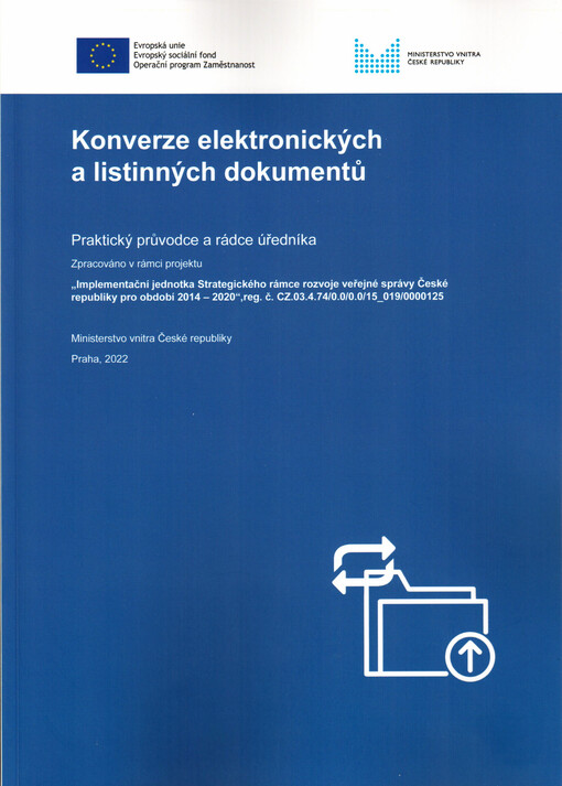 DUFFKOVÁ, Helena. Konverze elektronických a listinných dokumentů: praktický průvodce a rádce úředníka. Praha: Ministerstvo vnitra České republiky, 2022. 53 stran.