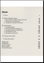 Knižní studie se zaměřuje na vztah myšlení Friedricha Nietzscheho a Ladislava Klímy.Kriticky se staví k charakteristice Klímy jako „českého Nietzscheho“, a to jednak v konfrontaci s dřívějšími výklady zkoumaného vztahu, zejména s pojetím slavisty Urse Heftricha, jednak srovnáním textů, v nichž oba filozofové vykazují největší podobnosti (Nietzschovy knihy Antikrist, Genealogie morálky a Ecce homo s pasážemi Klímova Velkého romanu a autobiografickými texty). Klíma v tomto srovnání vystupuje jako nezávislý myslitel, především s ohledem na jeho smysl pro nízké, nauku o kontradikcionismu a (neo)kynismu. Nejpodstatnější doklad Klímovy svébytnosti však spočívá v hledání smyslu jeho myšlení pro dnešek, jež není odvoditelné z Nietzscheho. Zde autor argumentuje mimo jiné Klímovým neotřelým filozofickým stylem.