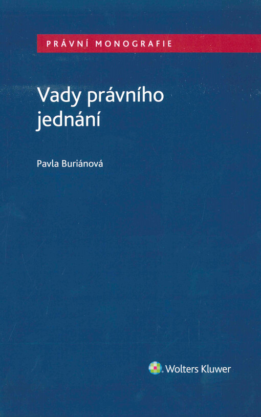 BURIÁNOVÁ, Pavla. Vady právního jednání. Vydání první. Praha: Wolters Kluwer, 2023. xii, 138 stran. Právní monografie.