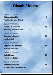 Ostrov pokladů (Dvojjazyčné čtení česko-anglické) převyprávěné moderním jazykem, pro začínající a mírně pokročilé angličtináře. Stevenson napsal Ostrov pokladů, když viděl svého synovce malovat vodovkami mapu ostrova. Začal dávat ostrovům jména, až nakonec napsal „Ostrov pokladů“ do pravého horního rohu stránky. Po dlouhé nemoci zemřel Stevenson roku 1894 na ostrově Upolu v jižním Pacifiku, kde do té doby žil. Myslíte, že na tom ostrově našel svůj poklad? Dvojjazyčné (zrcadlové) knihy patří mezi vhodné studijní doplňky pro výuku cizích jazyků. Texty v originálním jazyce jsou doplněny zrcadlovým českým překladem (nachází se po levé straně knihy). Většina nabízených dvojjazyčných knih je určena pro mírně pokročilé studenty. Hlavní hrdina, mladík Jim Hawkins, zjistí, že muž, jenž zemřel v hostinci jeho matky, je starý bukanýr Bill Bones, který svým bývalým druhům ukradl mapu nepojmenovaného ostrova, kde je zakopán poklad slavného pirátského kapitána Flinta. Jim mapu nalezne mezi věcmi mrtvého a ukáže ji zemanovi Trelawneyovi a lékaři (a zároveň smírčímu soudci) Liveseyovi. Oba muži pak zorganizují námořní výpravu na lodi Hispaniola za pokladem