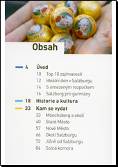 Průvodce po Salzburgu vás seznámí s historií města a provede vás po všech zajímavých místech. Salzburg se řadí mezi přední světová festivalová města a soupeří s Vídní o pozici rakouského hlavního města kultury a umění. S naším průvodcem se určitě neztratíte - součástí publikace je totiž několik map Salzburgu a okolí. Průvodce po Salzburgu vás stručně seznámí s historií města a provede vás po všech zajímavých místech, jichž je v tomto poměrně malém městě mnoho, stejně tak tu probíhá řada kulturních akcí mezinárodního významu. Návštěvníky, kteří jsou v Salzburgu poprvé, naplňuje úžasem všudypřítomná vznešenost barokní městské architektury. Jen zřídka lze spatřit město, které tak harmonicky splývá s okolní přírodou. I když se město nejvíce proslavilo jako rodiště Wolfganga Amadea Mozarta, jeho kulturní odkaz je mnohem bohatší. Salzburg se řadí mezi přední světová festivalová města a soupeří s Vídní o pozici rakouského hlavního města kultury a umění.