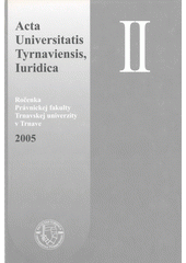 Acta Universitatis Tyrnaviensis, Iuridica: ročenka Právnickej fakulty Trnavskej univerzity v Trnave, 2005. Trnava: Právnická fakulta Trnavskej univerzity, 2005. 318 stran.