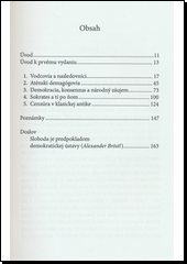 Útla, no obsahovo veľmi hodnotná kniha historika Mosesa I. Finleyho pozostáva z troch prednášok, ktoré autor predniesol v USA v r. 1972 a z dvoch neskoršie publikovaných statí, ktoré dopĺňajú rozšírené vydanie z r. 1984. Finley sa v nich pokúša rozvinúť diskurz medzi koncepciou demokracie ako ju chápali starovekí Gréci a jej modernými koncepciami, pričom poukazuje na to, že pochopenie fungovania jednej spoločnosti nám umožní porozumieť fungovanie spoločnosti inej, aj keď úplne odlišnej. Slovenské vydanie tejto práce uzatvára doslov prof. Alexandra Bröstla s názvom Sloboda je predpokladom demokratickej ústavy.