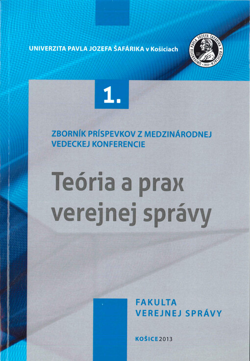"Teória a prax verejnej správy": zborník príspevkov z medzinárodnej vedeckej konferencie : organizovanej pri príležitosti 15. výročia založenia Fakulty verejnej správy konanej v dňoch 11.-12. 9. 2013. Vydanie prvé. Košice: Univerzita Pavla Jozefa Šafárika, Fakulta verejnej správy, 2013. 410 stran.