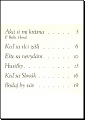 SUCHOŇ, Eugen. 6 slovenských ĺudových piesní pre ženský (detský) zbor a cappella [hudebnina]. 3. vyd. Bratislava: Slovenský hudobný fond, 1990. 1 partitura (24 s.). Zborová tvorba.