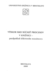 Výskum ako súčasť procesov v knižnici - predpoklad efektívneho manažmentu: zborník z odborného seminára, ktorý sa konal 7.-8. júna 2000 v Trnave. Bratislava: Univerzitná knižnica v Bratislave, 2000. 153 s.