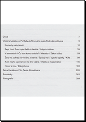 Kniha věnovaná jednomu z nejvýraznějších tvůrců současné evropské kinematografie je dalším pokračováním série publikací v edici Camera obscura, které mapují filmovou tvorbu klíčových evropských režisérů (Kusturica, Wenders). Společný profil Pedra Almodóvara se pokouší domácímu klubovému i běžnému filmovému divákovi, řečeno slovy autorek, "zprostředkovat jeho autorsky nezaměnitelné, tak říkajíc patidifuso (dech beroucí) filmové vidění podivuhodnosti člověka / světa". Základ profilu tvoří text Viktórie Matákové, která čtenáře zasvěceně - opírajíc se o studium materiálů přímo v Barceloně a Madridu - přivádí do politicko-kulturně-společenského kontextu Almodóvarovy tvorby a zároveň v patnácti výkladech představuje základní parametry a souvislosti každého jeho celovečerního hraného filmu. Podnětnou nadstavbou je potom text Petry Hanákové, která zejména (ale ne nutně) uměnovědně poučenému divákovi nabízí síť nejzajímavějších příznaků almodóvarovského filmového stylu. Text doplňuje bohatý fotografický materiál a filmografie autora.