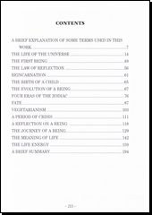 Základem všeho je Podstata, spojovaná s Bohem a pozorovatelná skrze Tvůrčí dílo. Život sám pak nabývá různých forem, podob. Existují bytosti na nižších a vyšších úrovních - rostlinných, živočišných, lidských. Vyvíjejí se a zdokonalují, procházejí mnoha životy, aby mohly proniknout k vyšším duchovním úrovním a poznání, které je vrací zpět k prapůvodní Podstatě. Stejně tak i vesmír prochází vývojem, střídají se zde 4 základní éry propojované s vlivy znamení zvěrokruhu. A to se projevuje na celkovém směřování života lidstva. Kniha představuje ucelený filozofický systém života a bytí, vycházející z esoterických nauk. Snaží se poskytnout odpověď na otázky dotýkající se smyslu existence, zákonitostí života, osudu.