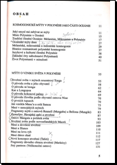Vzhledem k historickým a geografickým souvislostem kultura polynéských ostrovů není izolována od kultur Melanésie a Mikronésie. Proto kniha popisuje a srovnává základní náboženské představy, mýty a legendy rozličných národů Oceánie. Hlavní pozornost je věnována kosmogonii - mýtům o stvoření světa a jeho obyvatel.