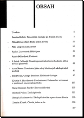 Sborník přibližuje základní směry současné ekologické filozofie. Sborníku obsahuje texty například od: Rachel Carson, Kristin S. Shrader-Frechett, Bill Deval, Gary Snyder, Ame Naess, Michael Pollan, Henryk Skolimowski, Erazim Kohák, J. Baird Callicott, George Sessions, Albert Schweitzer atd.