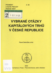 SEKNIČKA, Pavel. Vybrané otázky kapitálových trhů v České republice. Praha: Univerzita Karlova v Praze, Právnická fakulta v nakl. Vodnář, 2003. 107 s. Prameny a nové proudy právní vědy, č. 34.