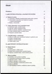 Odborná publikace je věnována činnostem centrálních bank v tržních ekonomikách a navazujícím oblastem. Největší pozornost autor věnuje měnové politice, regulaci bank a dohledu nad nimi. Zabývá se měnovou teorií, vývojem emise a oběhu peněz, problematikou inflace a deflace a alternativami dalšího vývoje bankovních systémů. Teoretický výklad je důsledně srovnáván s praxí v České republice a dalších zemích. Třetí vydání reflektuje zásadní změny v posledních letech, včetně finanční a ekonomické krize.
