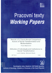 MACHONIN, Pavel, Lumír. GATNAR a Bohumil. BÚZIK. Results of a Czech-Slovak comparison: actors of social transformation and modernisation. Praha: Sociologický ústav Akademie věd České republiky, 1998, 65 s. Working papers =, Pracovní texty, 98/2. IS