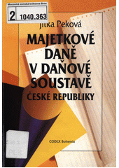 PEKOVÁ, Jitka. Majetkové daně v daňové soustavě České republiky. Vyd. 1. Praha: Codex Bohemia, 1997. 158 s.