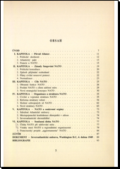 Kniha stručně popisuje historii, organizační strukturu a nové cíle této obranné aliance. Součástí publikace je plné znění zakládajícího dokumentu - Washingtonské smlouvy ze 4.4.1949.