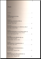 V deseti kapitolách této osobité pragensie jsou podrobně popsány jednotlivé objekty spjaté s pražským pobytem T. G. Masaryka a jeho blízkých. Kniha oživuje jejich tehdejší podobu, snaží se přiblížit nejdůležitější momenty v životě Masarykovy rodiny v době, kdy konkrétní byt obývala, ale připomíná i další obyvatele bytů a domů a jejich osudy poté, co se Masarykovi odstěhovali. Díky populárnímu, vyprávěcímu stylu je kniha dostupná i laickému čtenáři, jenž si kromě popisu života a působení prvního československého prezidenta může udělat představu i o tom, kde, kdy a jak bydlela na přelomu 19. a 20. stol. rodina českého univerzitního profesora. Bohatý obrazový materiál (čb. fot., faksimile, mapka), přehled literatury, jmenný rejstřík.
