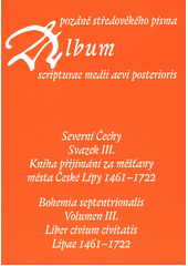 Kniha přijímání za měšťany města České Lípy 1461-1722. Album resp. katalog písma provázený přepisy a fotografie 14 ukázek, možno použít též jako paleografickou pomůcku. Do knihy byla zaznamenávána jména nových měšťanů přijímajících městské právo a jiné pamětihodné záležitosti. Kniha byla užívána až do 18. století.