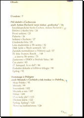 Čtyři nejznámější hry A. P. Čechova doprovází Mrožkova hra Hrbáč a vzpomínky na Čechova a Mrožka na českém jevišti. (Soupis incenací her Čechova a Mrožka). Soubor šesti brožovaných knížek v kazetě.