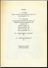 Výbor textů začíná autobiografií pro nakladatelství Piper z r. 1923 a 1924. V oddíle Vyznání jsou uvedeny ukázky textů z let 1915 až 1950 a témata jsou různorodá (odraz válečné atmosféry v jeho díle, úvaha na téma současného a nesoučasného malířství, o roli umělce ve státě i jeho projevy ke studentům i přátelům). Další oddíl nabízí úryvky rozmluv, dopisy a poznámky i rozhovory s různými osobnostmi a jejich vzpomínky na Beckmanna. Informace o umělci doplňuje stručný chronologický přehled malířova života.