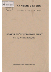 BARTES, František. Konkurenční strategie firmy: studijní opora pro distanční studium. Vyd. 1. Brno: Sting, 2007. 88 s.