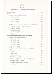 Kniha v první části nabízí základní informace o průběhu těhotenství a porodu, popis běžných potíží v tomto období a osvědčené recepty na jejich zvládnutí pomocí éterických olejů, popisuje těhotenskou a dětskou masáž (+ fotografický průvodce v příloze).Druhá část je věnována obecným informacím o aromaterapii a způsobech použití éterických olejů. Třetí část popisuje vybrané éterické a nosné oleje a seznam vhodných a nevhodných éterických olejů pro období těhotenství.