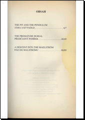 POE, Edgar Allan. The pit and the pendulum =: Jáma a kyvadlo. Překlad Josef SCHWARZ. [Praha]: Garamond, c2001. 133 s. Bilingual text with commentary.